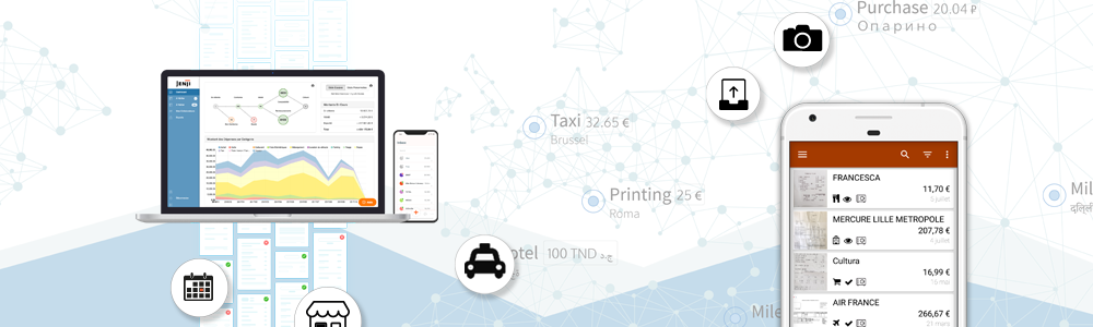 Jenji is multi-tasking: the solution simplifies the recording of your business expenses (restaurant, accommodation, supplies) as well as your business trips (mileage allowances, tolls, car parks).