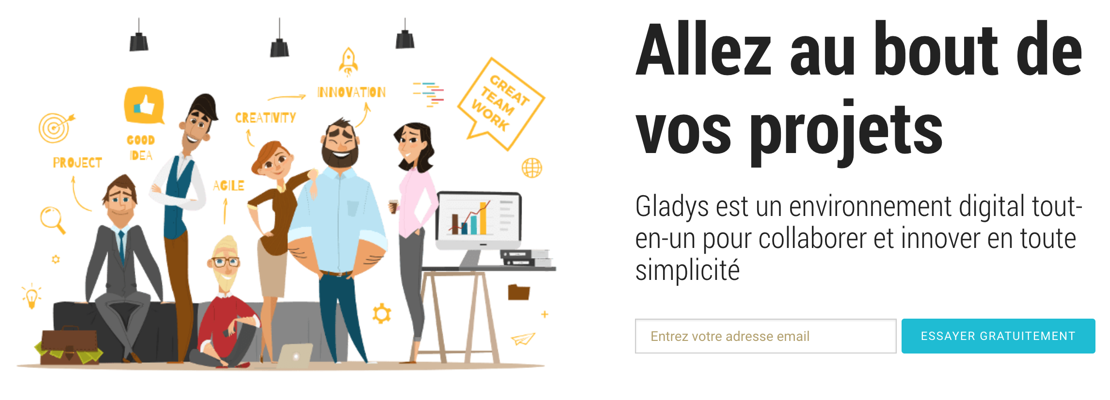 Gladys is a collaborative platform that simplifies work in project mode: