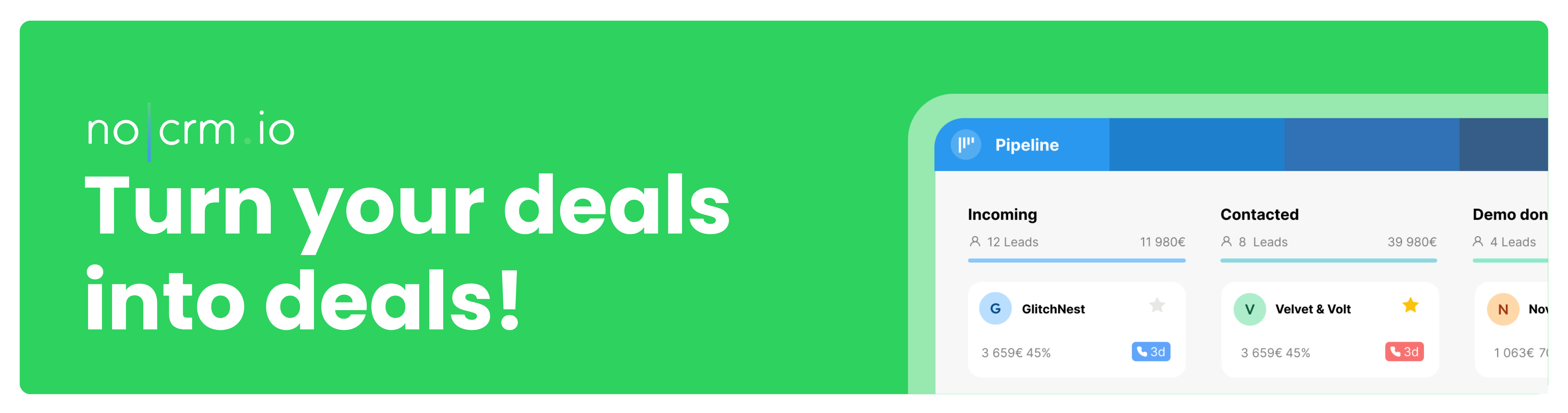 noCRM is an action-focused lead management tool, the real alternative to traditional CRMs for those who want to sell more and handle less admin.
