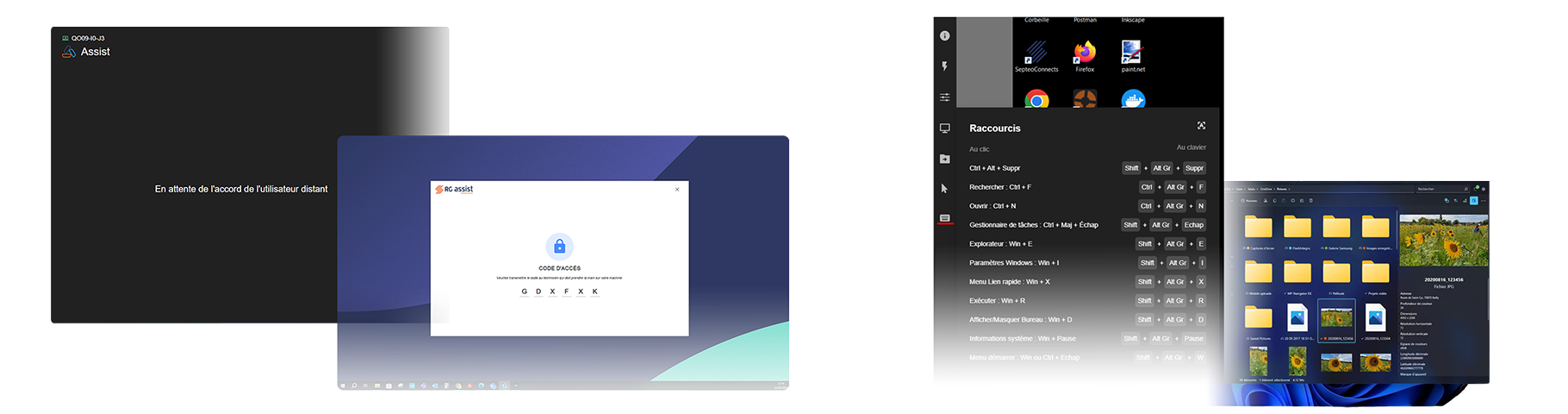 Assist is a 100% French remote control solution designed for MSPs and IT support teams. Integrated into the RG System Suite, it enables rapid intervention on user workstations without any prior installation, while ensuring a high level of security and user comfort.